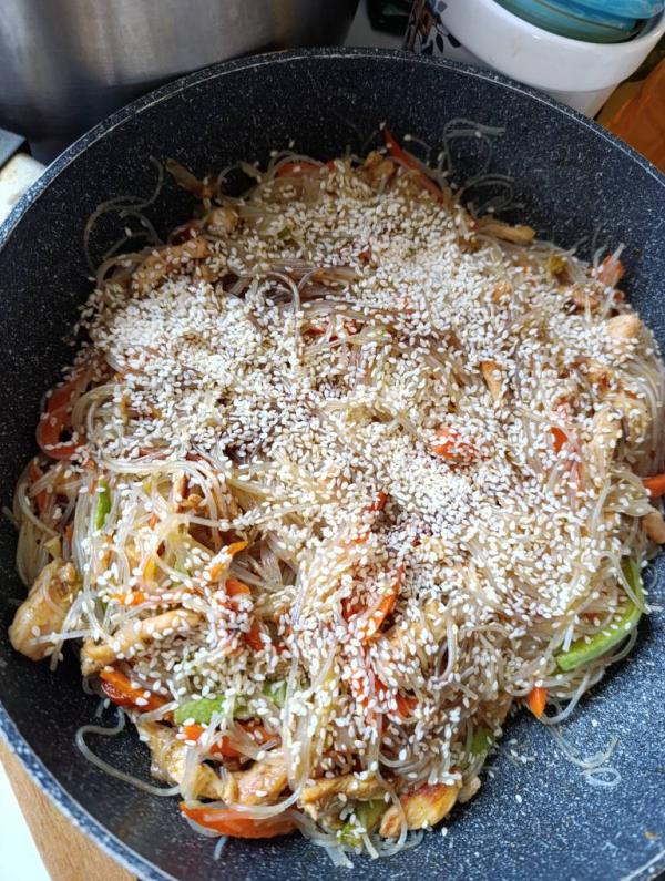 Фунчоза с курицей и овощами