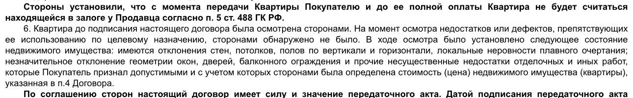 @tatyanapiro прочитала) последняя строчка и означает,что у покупателя нет претензий к застройщику по качеству работ)