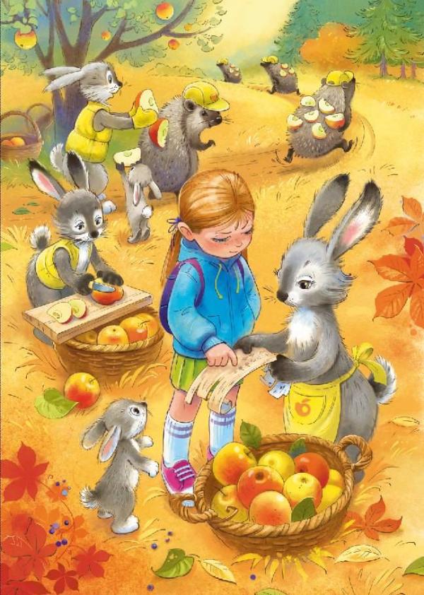 А чего у зайчика , который яблоки режет, глаза такие грустные? )