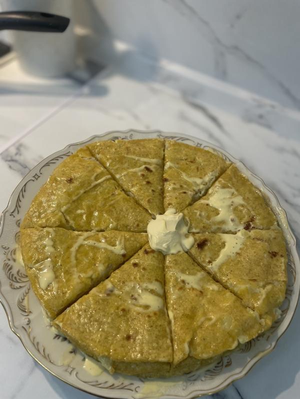 2) тесто: берем муку обычную и кукурузную чтоб было по ровному можно взять тарелки для супа и одна в одной тарелке другая в другой, после же берем тазике насыпаем обе тарелки с муками хорошо размешиваем потом добавляем теплую воду по чуть чуть чтоб тесто было не жидким но и не твердым и вот оно готово тесто,оставляем на минут,10,15 так оно лучше становится