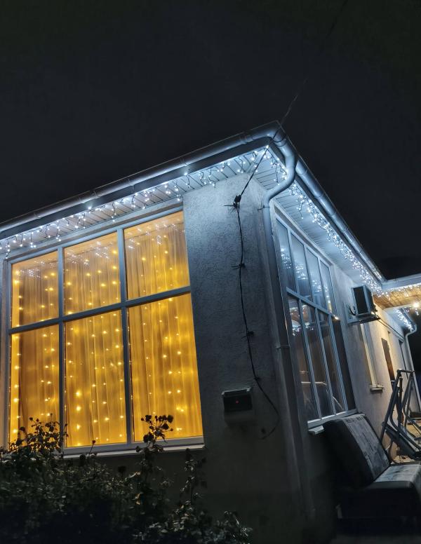 Ну все, теперь моя душенька спокойна и довольна 😊 я 7 лет мечтала повесить гирлянду вокруг дома) наконец-то муж это сделал, 5 часов работы 😁