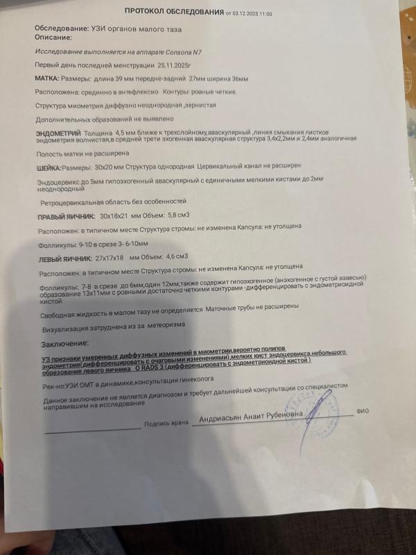 Отправила репродуктологу. Есть проблемы, скорее всего полип…