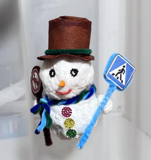В этом году у нас попроще игрушка новогодняя) Когда увидела тематику «ПДД», мягко говоря, прихерела. Но спасибо интернету за идеи, слямзили снеговика и сын счастливый завтра понесет в сад😃
