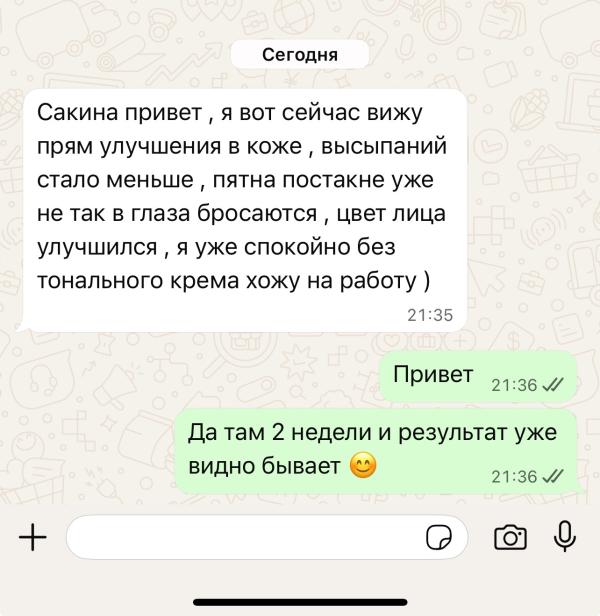 Моя девочка с Саратова . Жаловалась на избыточную жирность , черные точки , высыпания периодические , постакне . Пока там была реанимировала кожу ей