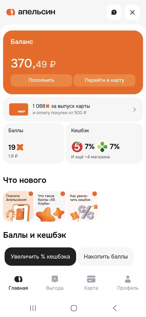 У кого есть апельсиновая карта пятерочки? 370 это бонусы? Я вообще ничего не понимаю, как их тогда списать, и 370 это 1 бонус 1 рубль или как? Внизу пишет бонусов 19, а тут 370, подскажите пожалуйста кто в курсе)