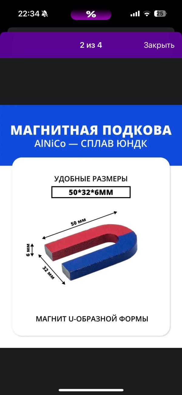 @nata.a.konovalova Лабораторный дугообразный U магнит подкова 80x62x10x20 мм ( слабые магнитные свойства )