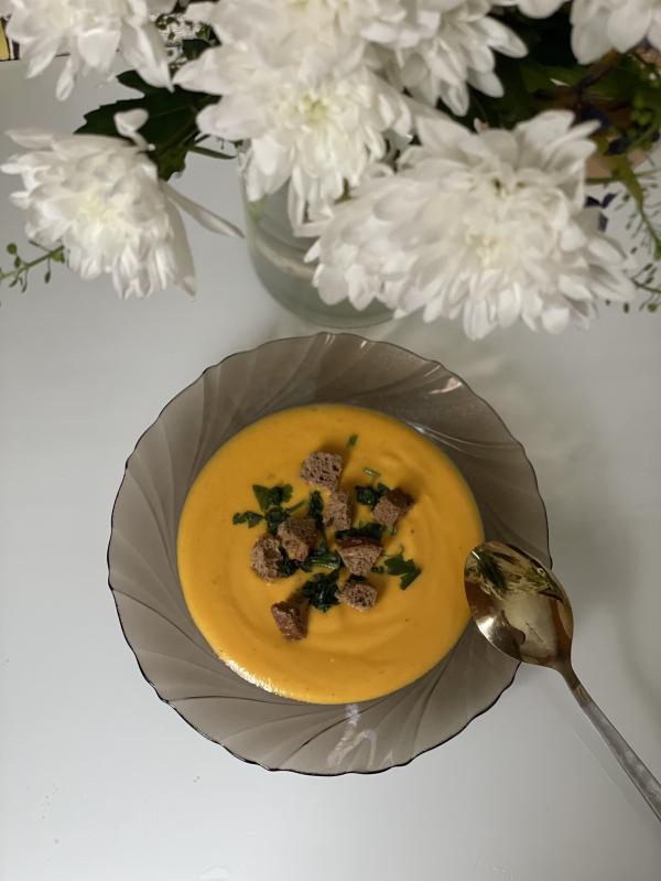 Давно не готовила суп-пюре) Муж и я его обожаем, Яра , как всегда выброжает 🤪 Ну может с садика придет, поест … Еще приготовила гречу и курочку на ужин ) Что у вас сегодня по меню ?)