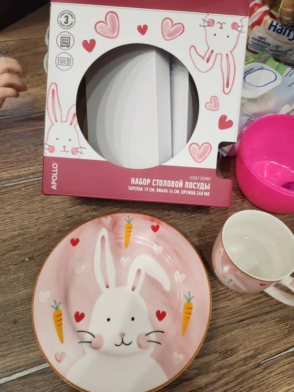 Какой красивый набор детской посуды 🥰🥰🥰🥰 Дочь просто в восторге Магазин начисляет бонусы и можно их потратить на первую покупку У нас так вышел набор чуть больше 500 руб. Глянцевый, можно мыть в посудомойке, очень милый)) Рекомендую