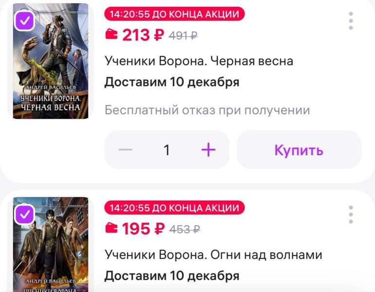 Там есть только у одного продавца, но она ломит за каждую эту книгу по 3к🤯 хотя вы сами видите, сколько стоят эти книги. У других продавцов когда-то были в наличии по 400, но в данный момент нет ни у кого, а я хотела к новому году
