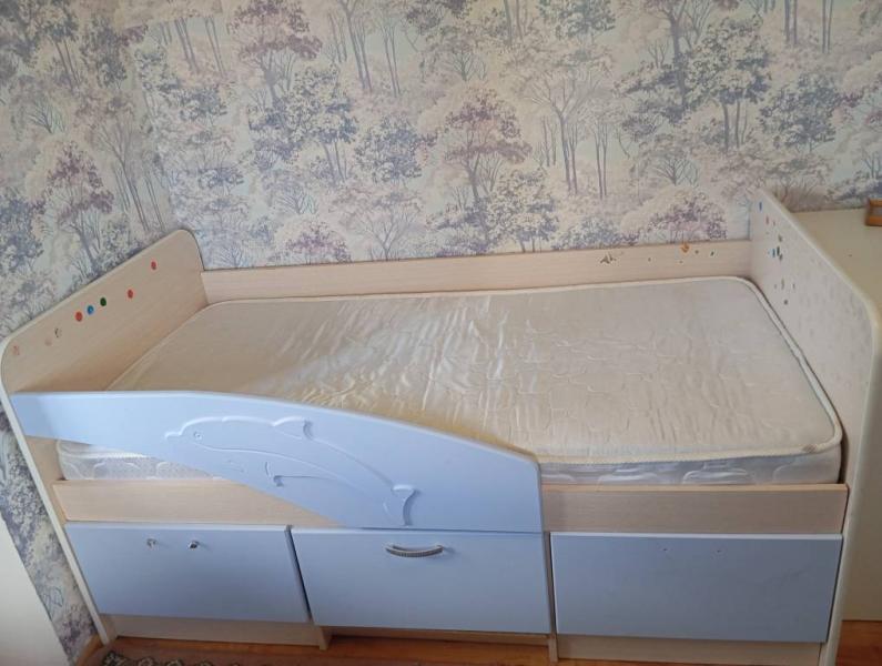 Продается детская кровать с матрасом в отличном состоянии. Имеются ящики для хранения белья и так далее.