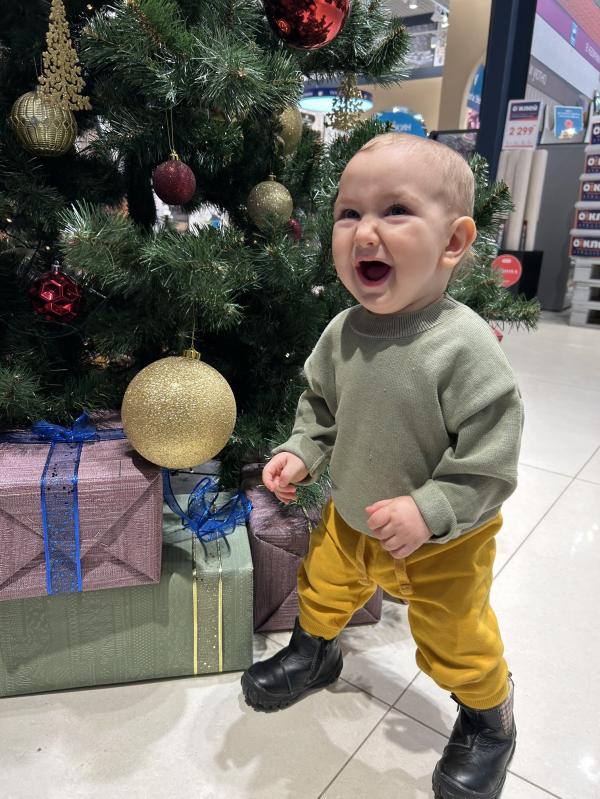 Старшая тоже жила себе с елкой спокойно, а этот прямо в магазине визжит, бежит и лезет их свернуть 🙈 естественно, человеку которому вчера исполнился год пока мало что можно объяснить.
