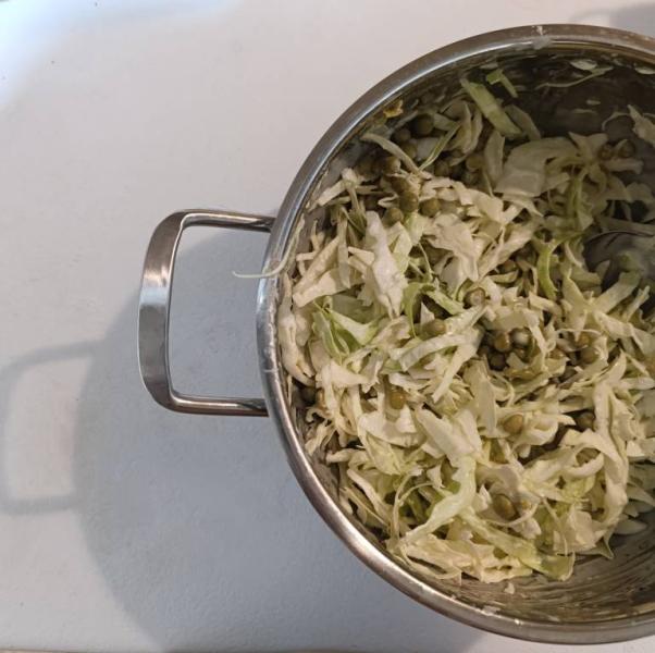 У нас была капуста обычная, осталась после приготовления борща. Можно и пекинскую взять)