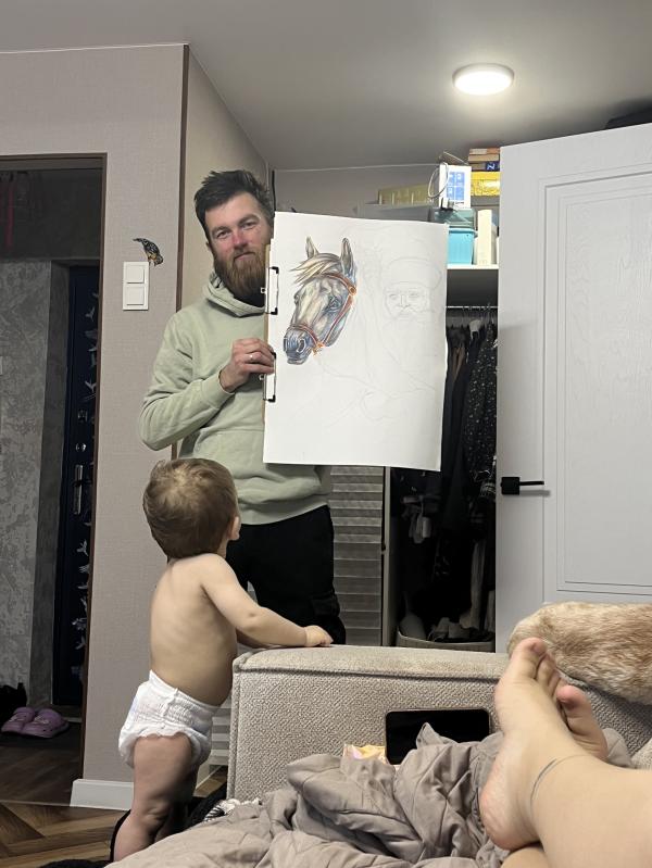 Муж очень опаздывает на работу Тем временем я: слушай ,покажи мне картину издалека ,которую начала 👀👀👀 Любовь она такая 🥲😂 P.S. фото попросил сделать он, чтоб показать начальнику почему опоздал 😅
