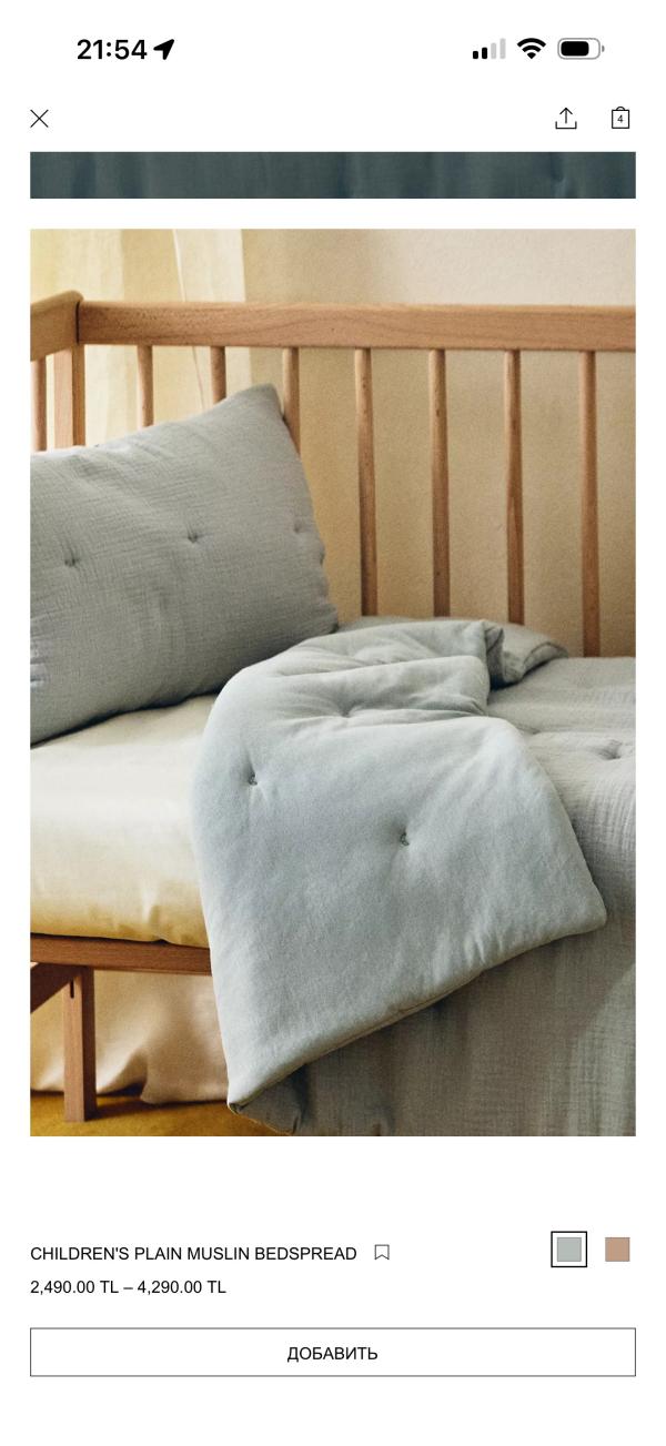 Заказала одеяло муслин+хлопок, на подарок или для личного использования, перепутала размеры 100X120 standard ZARA Home на нашу дет.кровать маловата!