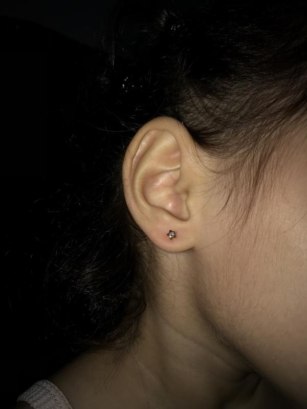 далее проверьте не зажата ли слишком туго застежка сзади уха , это вызывает воспаление и сдавливает ткани, там скапливается жидкость, которая не может выйти и это дает воспаление