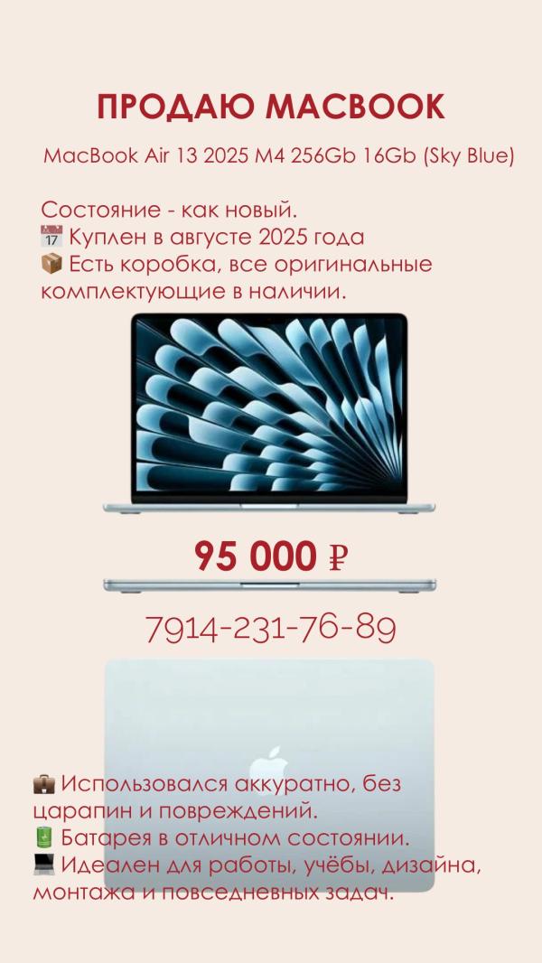 • Процессор: M4, 10-ядерный CPU / 8-ядерный GPU
