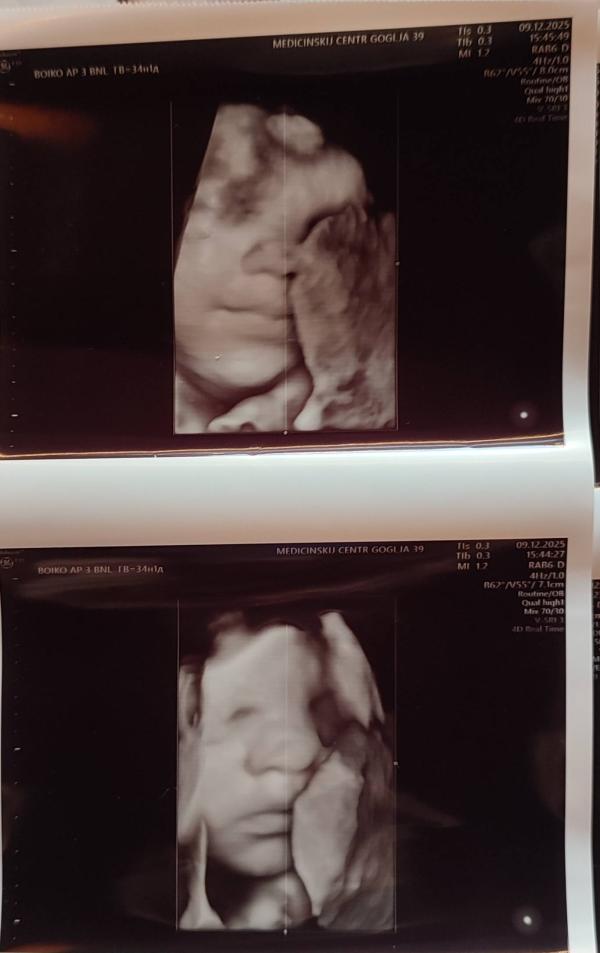 Да, третий скрининг) У него ещё такая моська хитрая была, не хотел личико показывать, то в плаценту упёрся носом, то ручками закрылся, мы обрадовались, что ручки убирает, так он ещё ногу задрал и улыбается, типо ничего вам не покажу😄