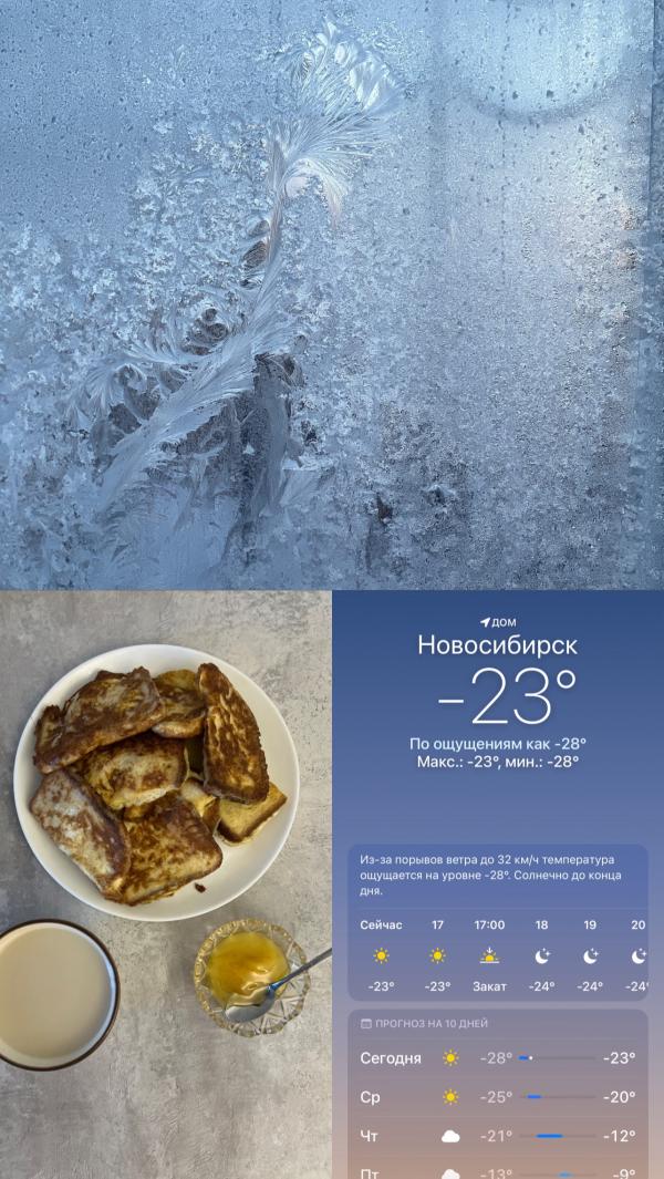 На улице прохладно, только сейчас увидела как мороз на балконе нарисовал 😍 а я пожарила гренки с яйцом (один из вкусов детства) уж очень захотелось с мёдом их 🤤