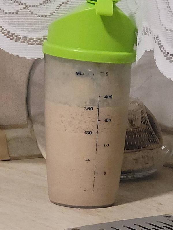 Она поднимается, потом будет ее пик и вот тогда ее нужно использовать для хлеба. Если видишь что она начинает опадать, сразу начинай готовить хлеб.