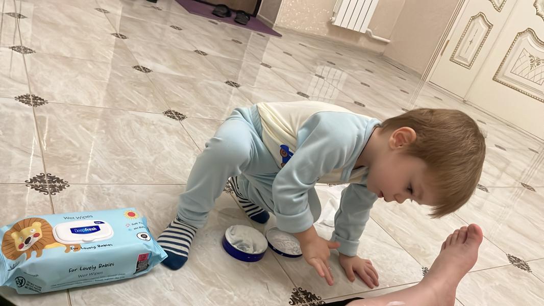 Посадила значит помазать ноги кремом уж очень горят они у меня 😖крем почти закончился как этот играется