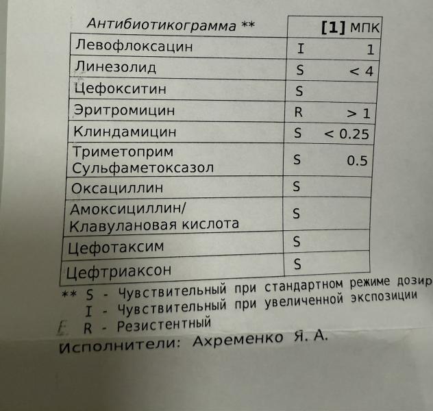 А так у бактерии устойчивость только к эритромицину, к остальным а/б она чувствительна