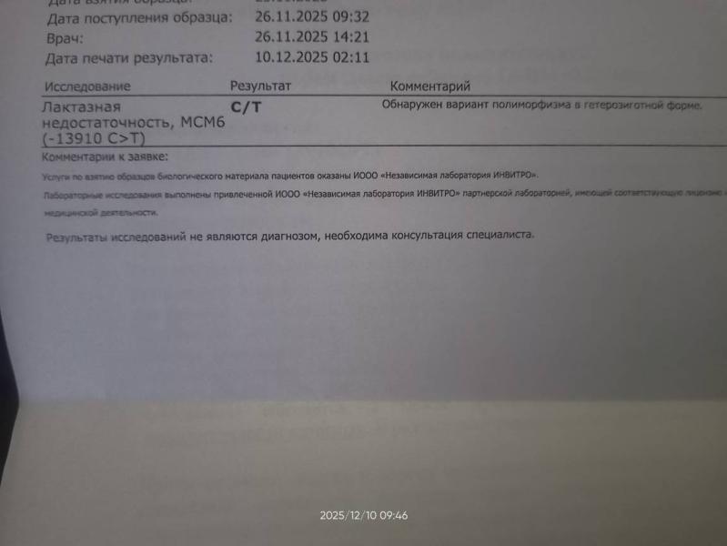 Доброе утро) Сдавала анализ на непереносимость лактозы, это 💯 непереносимость получается?А то сколько живу , даже не знала, пошла сдать анализ методом тыка)
