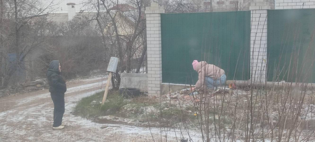 Уже пол часа напротив нашего дома трутся две девушки. Ковыряется в земле.