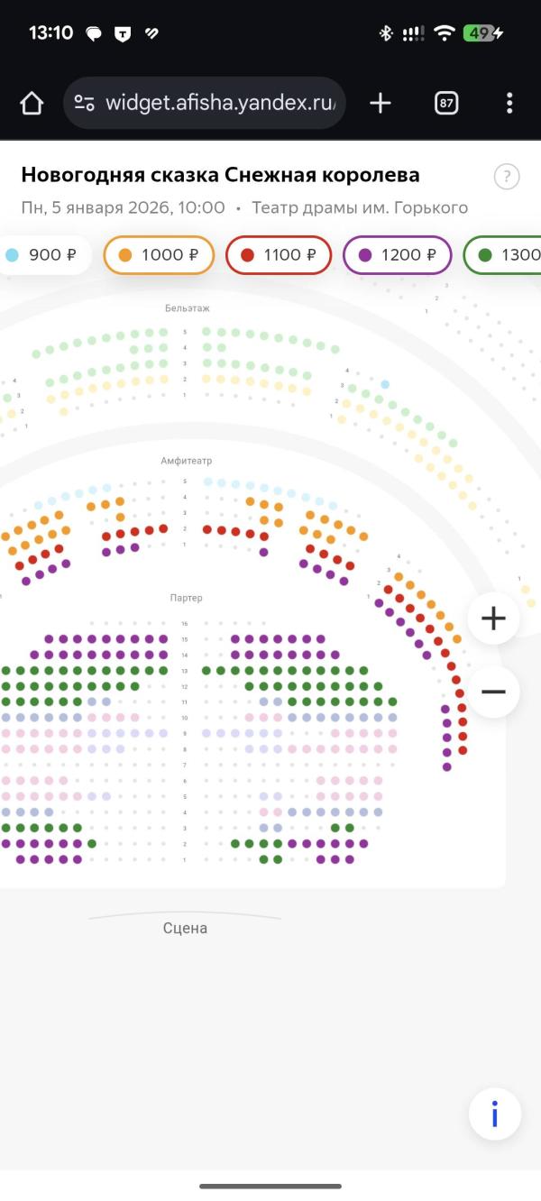 Я взяла амфитеатр первый ряд, хотела партер места ближе к проходу, но уж всё заняты были, мне посоветовали амфитеатр