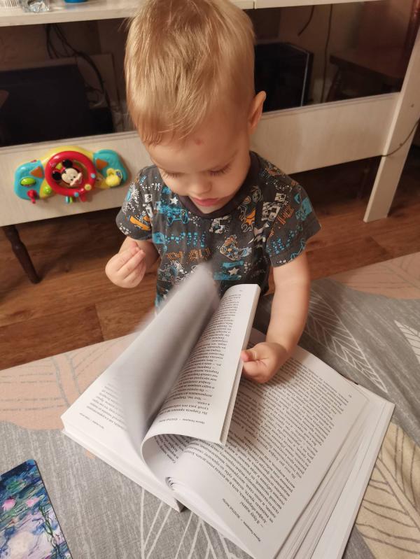 Ещё теплится во мне робкая надежда успеть закрыть за год 25 книг, но гнать себя вперёд нет ни сил, ни желания. 24 ведь тоже неплохо... Одно радует - растёт ценитель, судя по жесту ему полиграфия прям зашла.