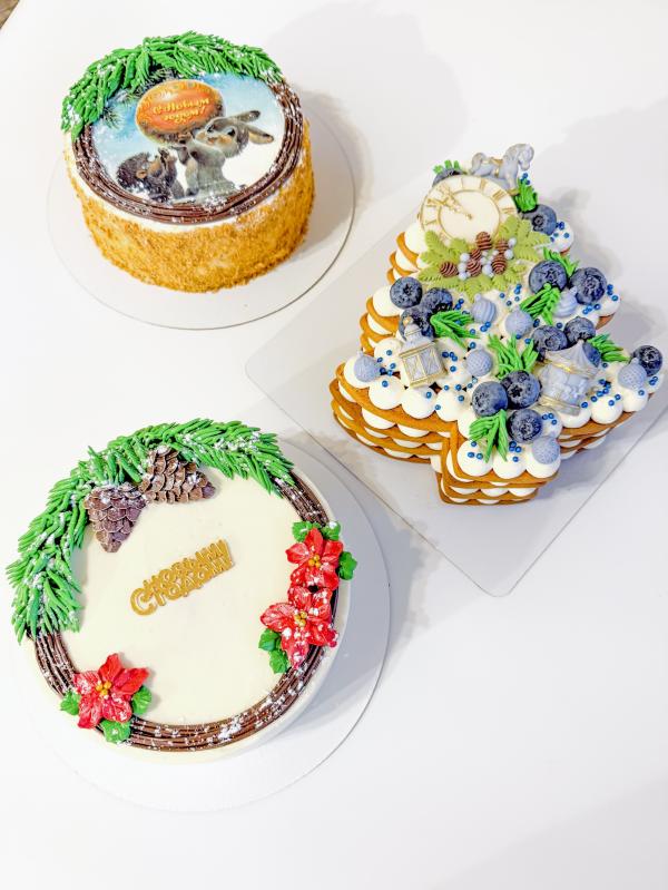 Принимаю заказы на новогодние торты😍 Ретро бисквитные 2300₽, Медовые елочки 2600₽, Круглые медовики, красный бархат, шоколадный бархат - 2500₽☺️ Бронь принимаю без предоплаты🤗 wa.me/79681568229 📲
