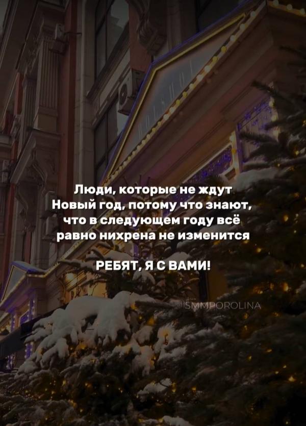 А я в последнее время боюсь НГ. Потому что как правило в феврале то налоги поднимут, то ковид, то война началась. Поэтому жду его с опаской. В 26 году цены опять на 25% вырастут на всё из-за поднятия налогов, зп уменьшается в геометрической прогрессии(