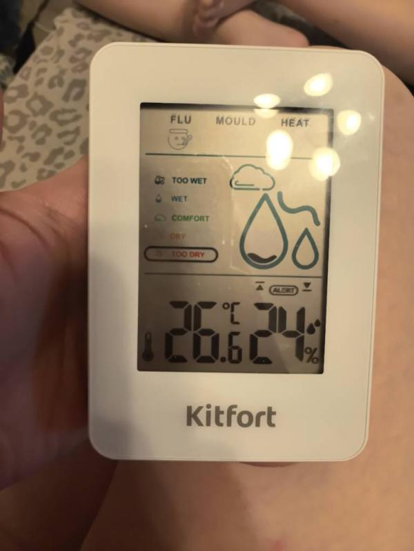 Окна закрыты? Что за увлажнитель? Какая площадь комнаты? На самом деле, от многих увлажнителей эффекта нет, я много поменяла, прежде чем нормальные нашла