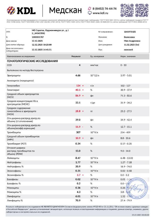 Норма: до 1.1 × 10⁹/л (до 12 лет).