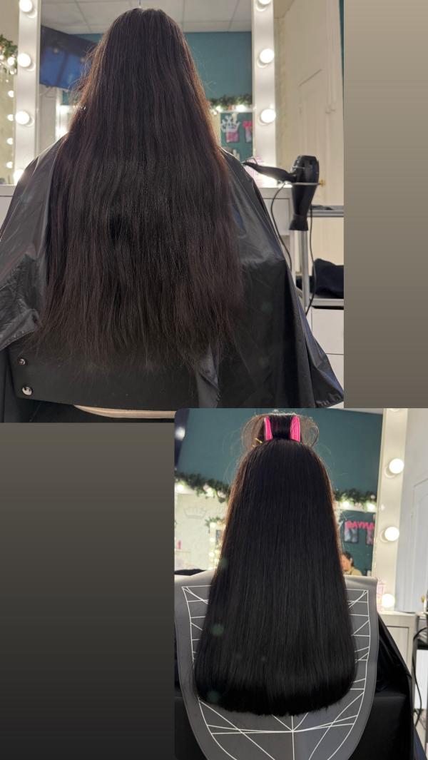 Сделали ровный срез + закрасили седины под свой цвет☺️ + глубокая восстанавливающая маска ☺️