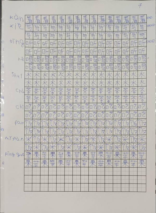 Моя дочка с 5 лет учит китайский, она может за день написать красиво и правильно 180 иероглифов (6 иероглифов, каждый по 30 раз), то есть усидчивая, рука набита, память шикарная. Читает также с 5 лет. Пишет по русски гораздо хуже, чем по китайски (но потому что я с ней этим не занимаюсь вообще, этому в школе научат).