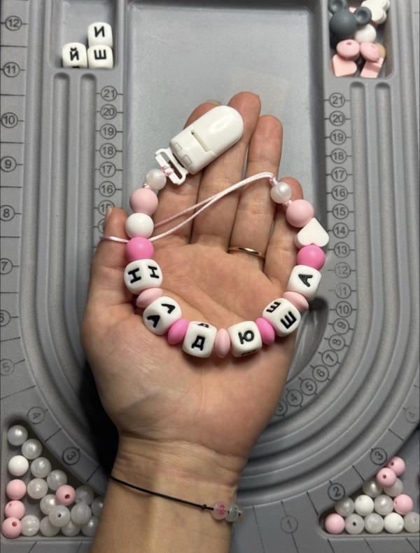 Девочки! ✨ Для тех, кто ищет милый и практичный аксессуар для малыша, делюсь полезной информацией: На озон есть продавец, который делает именные держатели для соски на заказ. Цена примерно 350-650₽ Вот, держатель по моей хртелочке 🩷 Продавец: https://ozon.ru/t/l7qxxog