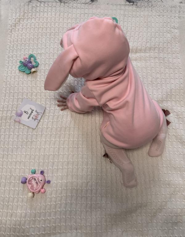 Сидит на попе с прямой спиной и играет в любимые игрушки 🧸