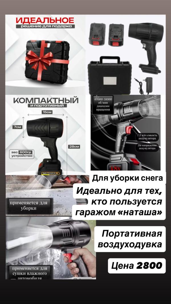 Портативная воздуходувка с 2 аккумуляторами Применяется для очистки снега, уборки, сушки влажного авто 🎁Идеальный подарок для тех кто пользуется гаражом «наташа» для уборки снега. Цена 2800 руб Доставка по городу🚗💨