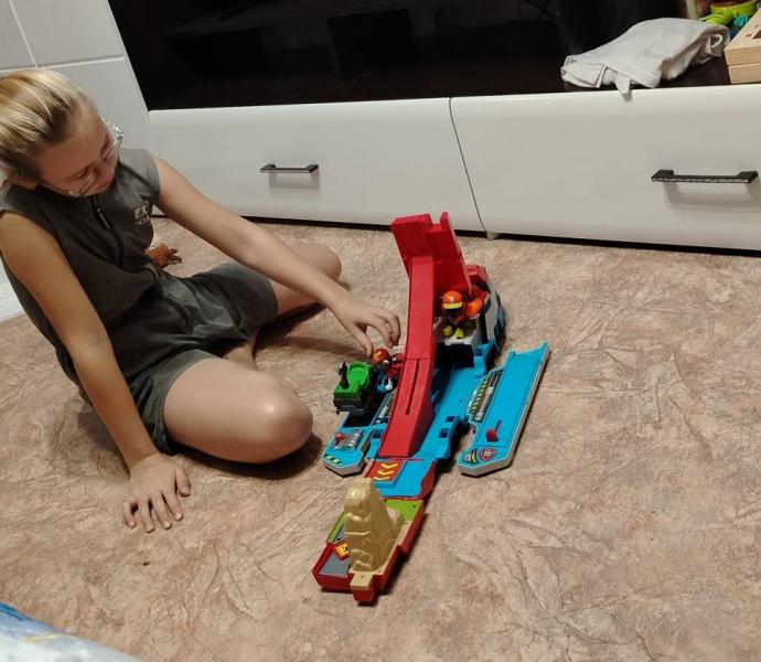 Это здорово что ещё играет в игрушки, у меня родственницы 9-10 лет уже взрослые и не во что не играют)