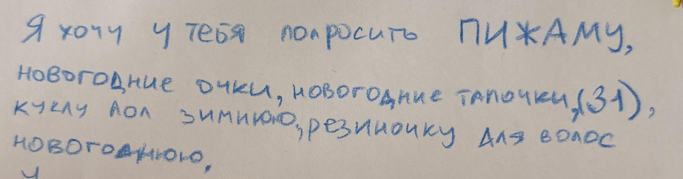 Сели писать письмо ДМ🎅🏻 Оказалось, появились еще желания, кроме пижамы 😂 Все дарить не будем 😂😂😂 (Писала я, под диктовку)