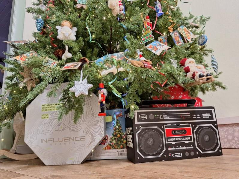 Сын открывает свою коробку с подарком, потом Адвент сквишей, потом я свой Адвент косметики, который подарил любимый на день матери.