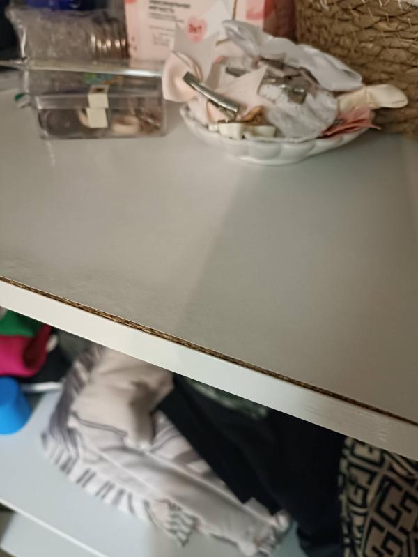 Если это полка снять, обрезать где-то до тех пор где распухло и там же чтоб край заклеили, но будет уже.... или просто новую купить