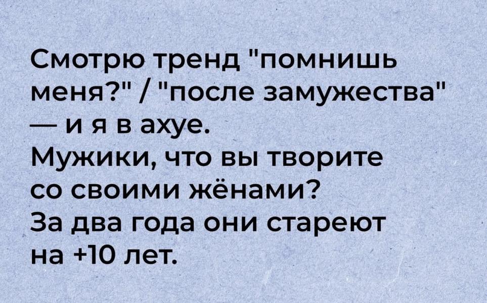 А я считаю, что они ахуевают в браке. Считают, что на женщине быт и дети и это «не так сложно» и вообще че ноешь ты же дома весь день сидишь?