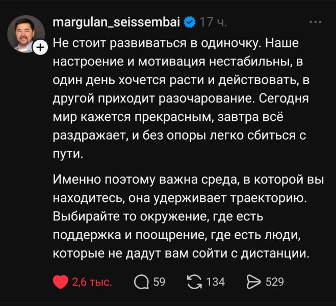 Маргулан так точно описал: сегодня есть мотивация, завтра её нет. И так хочется в такие моменты иметь опору 🫂