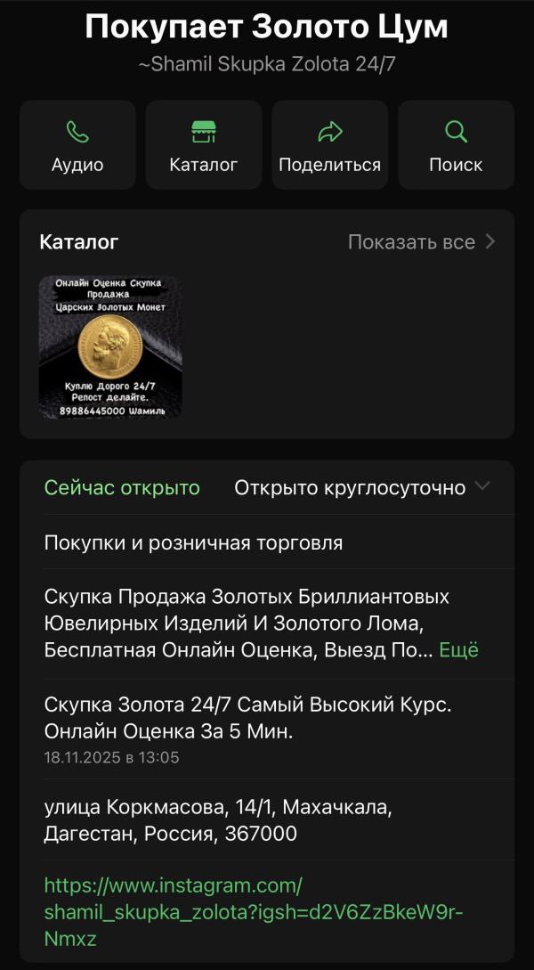 Мой личный рекомендасьон👌🏻Испробовано на себе. Приятно иметь дело. Если кто то не хочет контактировать с мужчиной, может спросить номер его жены, она очень милая и так же занимается золотом.