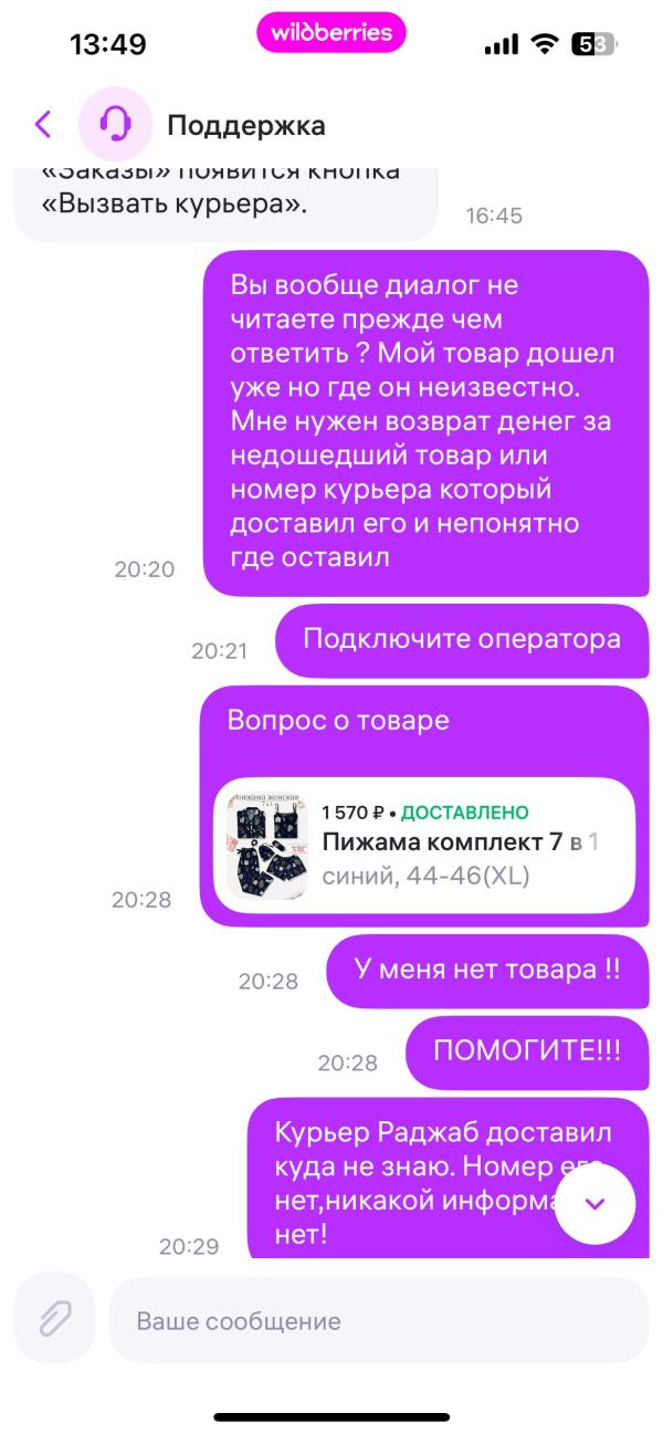 Девочки, кто знает подскажите как достучаться до этой ужасной поддержки Вайлдбериз. Просто дебильная похеристичная обратная связь. Ни номера курьера ,никакой помощи . Где товар неизвестно. Деньги кто-нибудь вообще возместит.