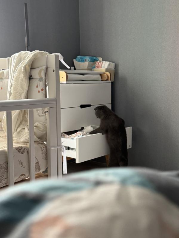 Домохозяйку завела себе😂🫠 На самом деле, он ищет ватные палочки. У него какая-то зависимость именно к детским ватным палочкам🤦🏽♀️