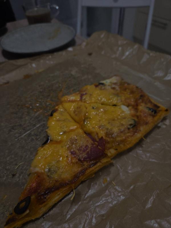 Неожиданно вкусно! Бездрожевое тесто ,томат паста+мазик ,мацаррела ,маслины,колбаса,сыр,итальянские травы. 17 минут при 180° и тесто не сухое.