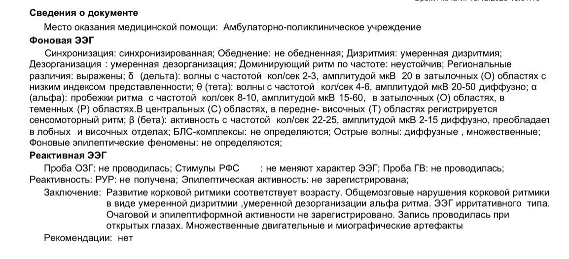 Написано ,что всё хорошо. Эпилепсии нет. Младшей делали,похожее практически было написано.