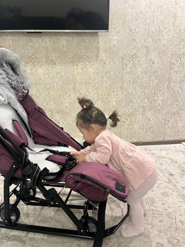 Санки было удобно, тоже с колесами)) но сейчас парень активный, явно не будет на них сидеть😅